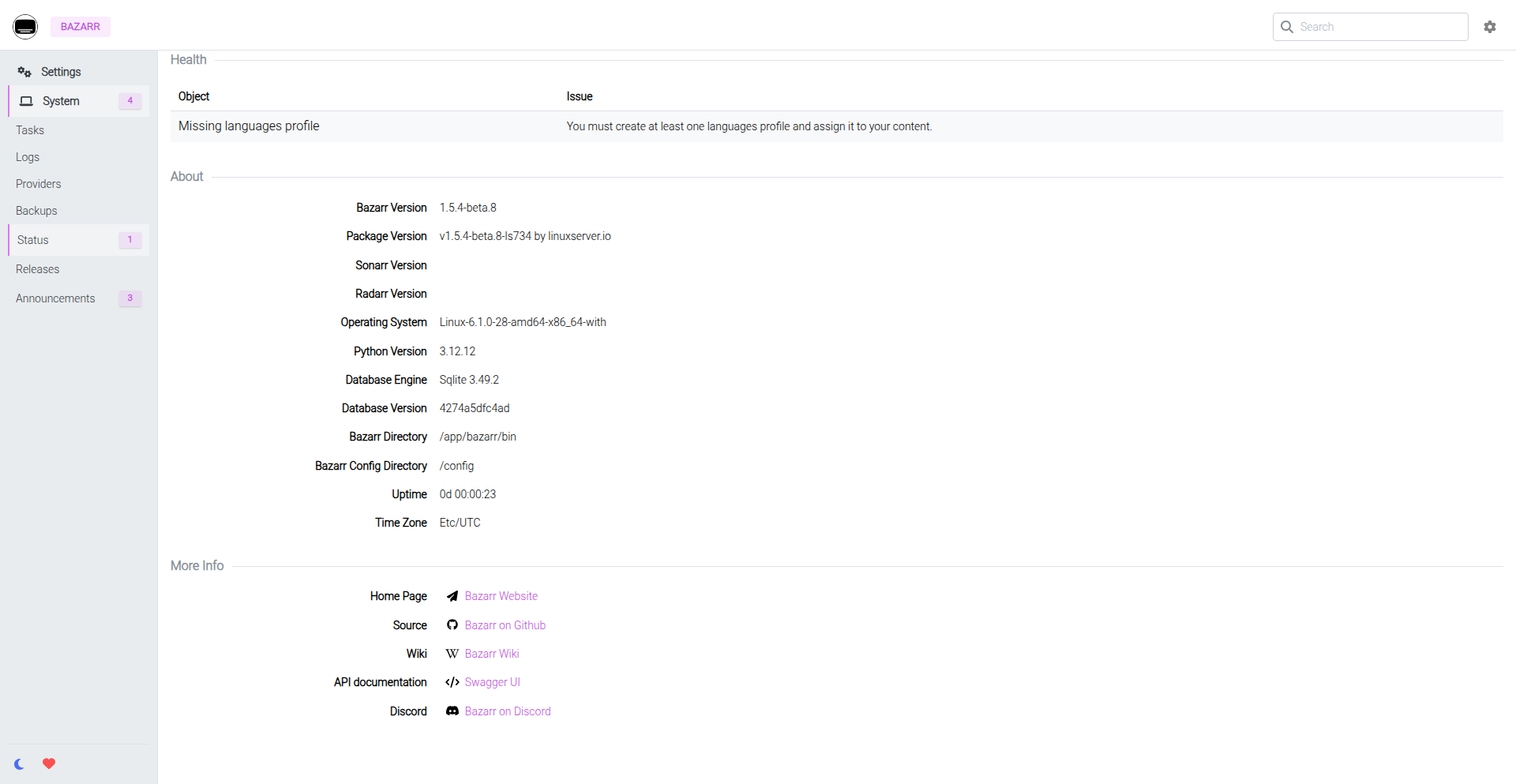 2025-10-16T06:51:36.409223484Z 2025-10-16 06:51:36,408 - waitress (7f607d356b28) : INFO (wasyncore:485) - BAZARR is started and waiting for requests on: http://[::]:6767