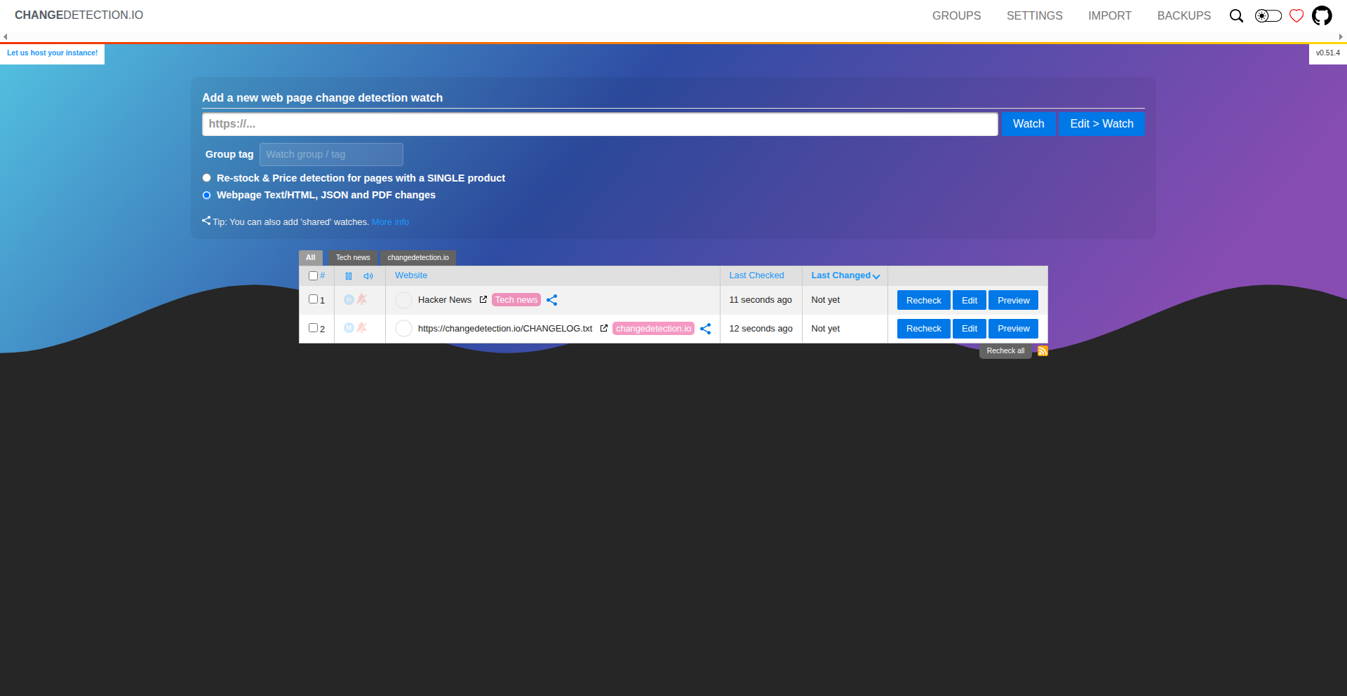 2025-12-10T11:07:36.650690814Z 2025-12-10 11:07:36.650 | DEBUG | changedetectionio.store:add_watch:430 - Added 'https://news.ycombinator.com/'