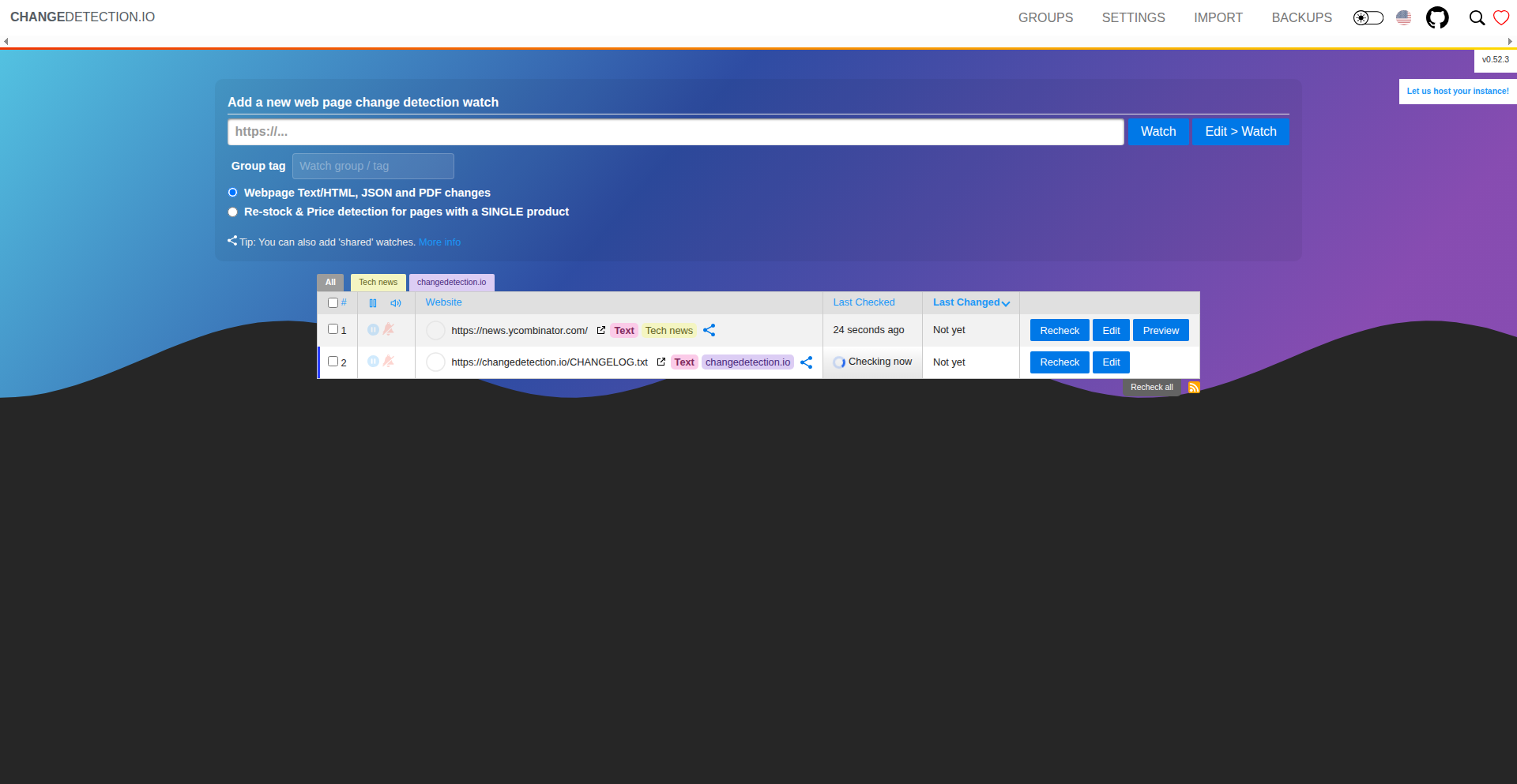 2026-01-14T11:44:59.859055187Z 2026-01-14 11:44:59.858 | DEBUG | changedetectionio.store:add_watch:417 - Adding URL 'https://news.ycombinator.com/' - ddc79200-940e-4b52-b877-51335bddf350