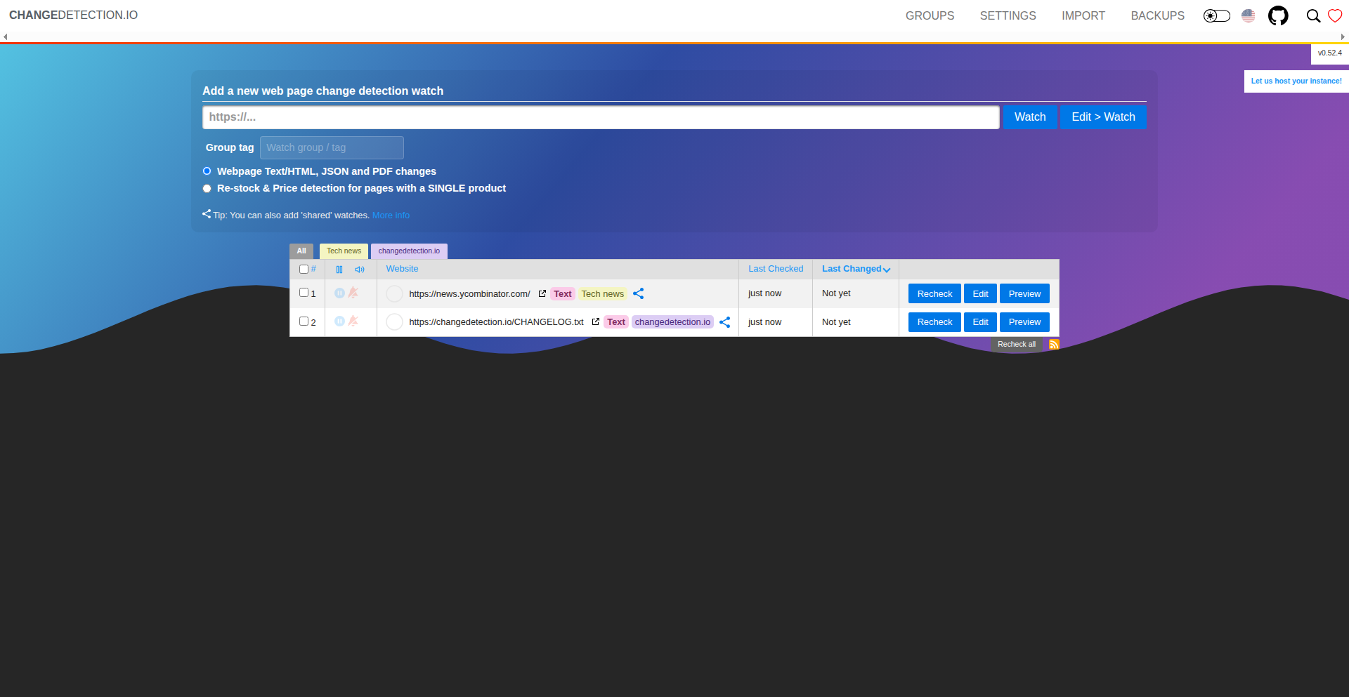 2026-01-14T13:16:54.684062176Z 2026-01-14 13:16:54.683 | DEBUG | changedetectionio.store:add_watch:433 - Added 'https://news.ycombinator.com/'