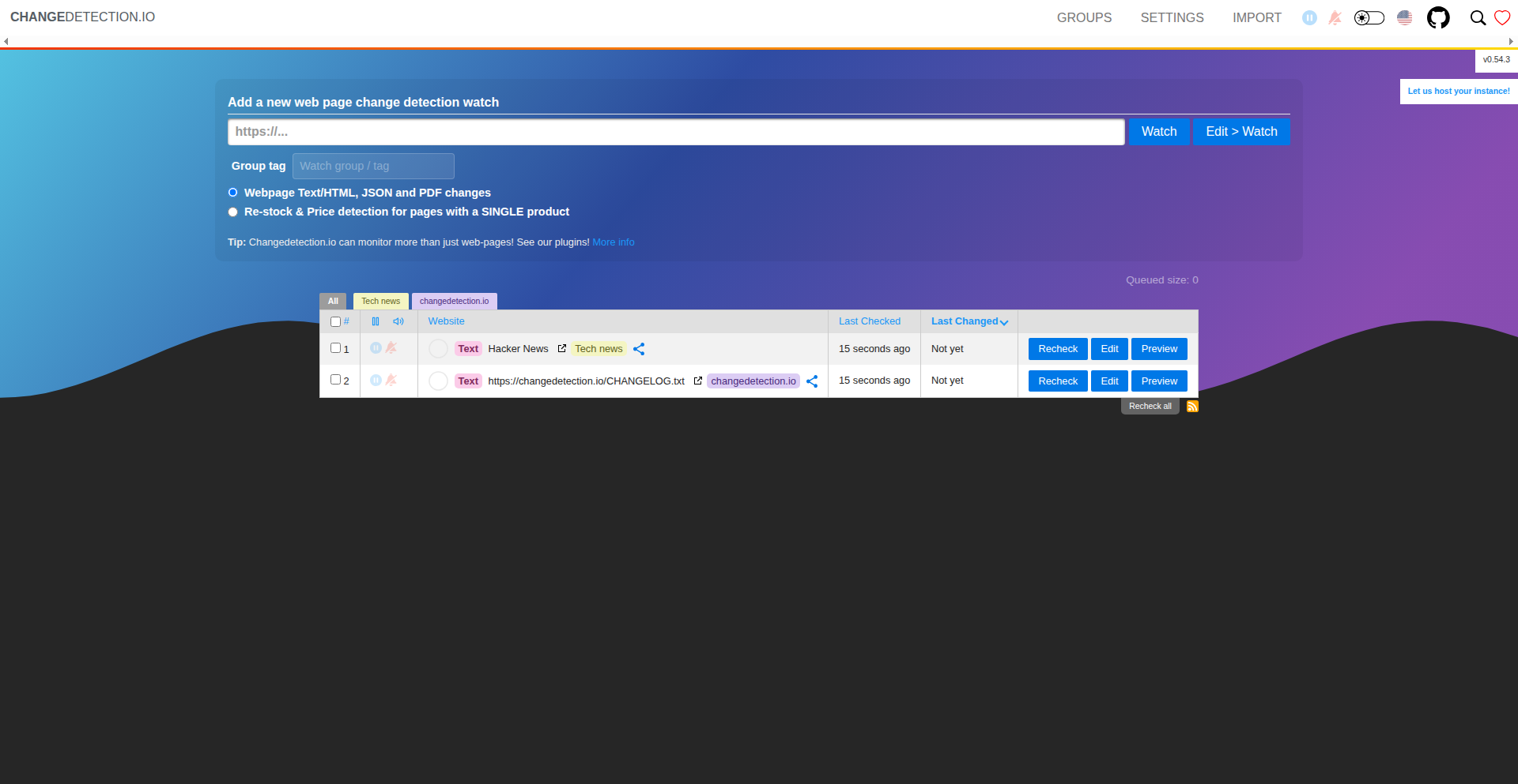 2026-02-28T23:51:24.602144757Z 2026-02-28 23:51:24.602 | DEBUG | changedetectionio.store:add_watch:774 - Adding URL 'https://news.ycombinator.com/' - 73103fc8-2768-404c-9ded-e7220906d346