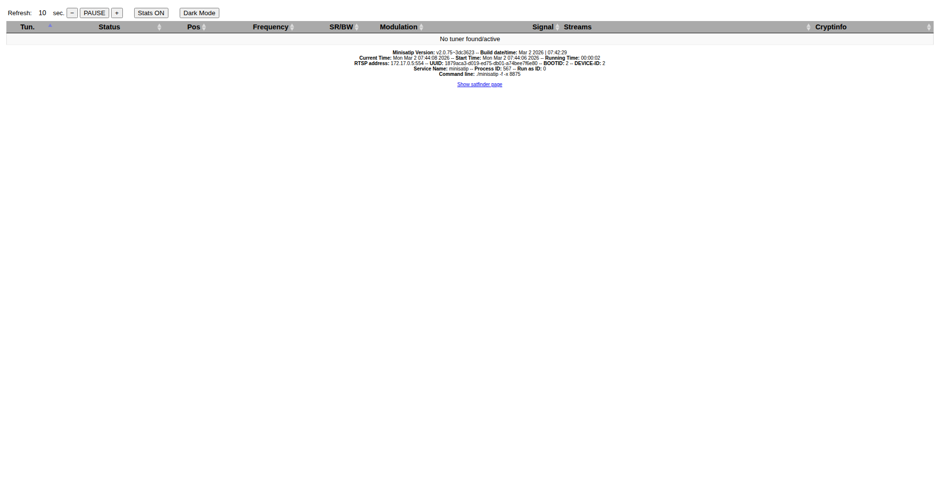 2026-03-02T07:44:00.892845601Z [02/03 07:44:00.892 main]: minisatip version v2.0.75~3dc3623, compiled on Mar 2 2026 07:42:22, with s2api version: 050C