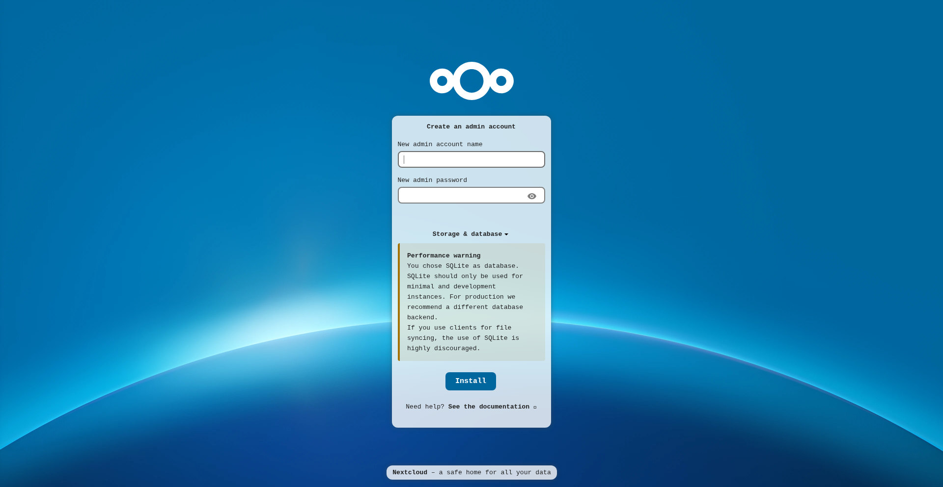 2026-02-03T12:12:55.175916341Z After completing the web-based installer, restart the Nextcloud container to apply default memory caching and transactional file locking configurations.