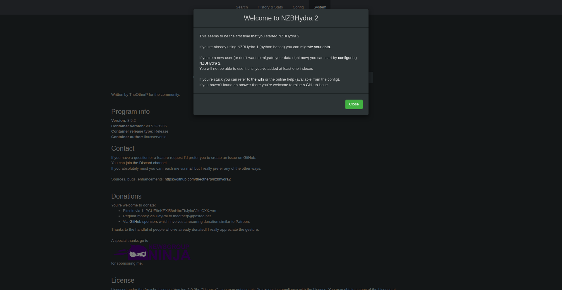2026-03-18T22:26:50.480260077Z NZBHydra 2: https://github.com/theotherp/nzbhydra2#donate
