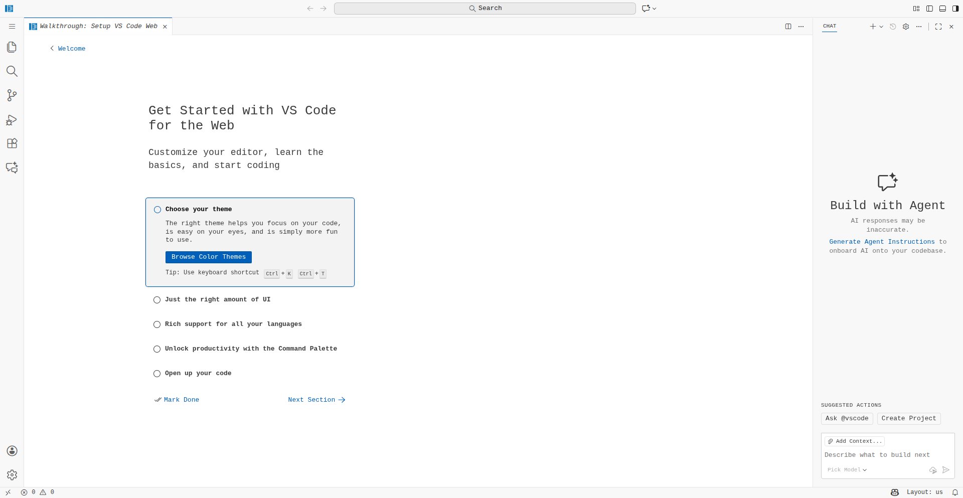 "message": "http://172.17.0.4:3000/insider-5b788a89e9185d6183132c03fe02e05bbf5a9c87/static/out/vs/code/browser/workbench/workbench.js 35:2860 \"%c ERR\" \"color: #f33\" CodeExpectedError: No default agent contributed\n at Wat.activateDefaultAgent (http://172.17.0.4:3000/insider-5b788a89e9185d6183132c03fe02e05bbf5a9c87/static/out/vs/code/browser/workbench/workbench.js:2232:12303)",