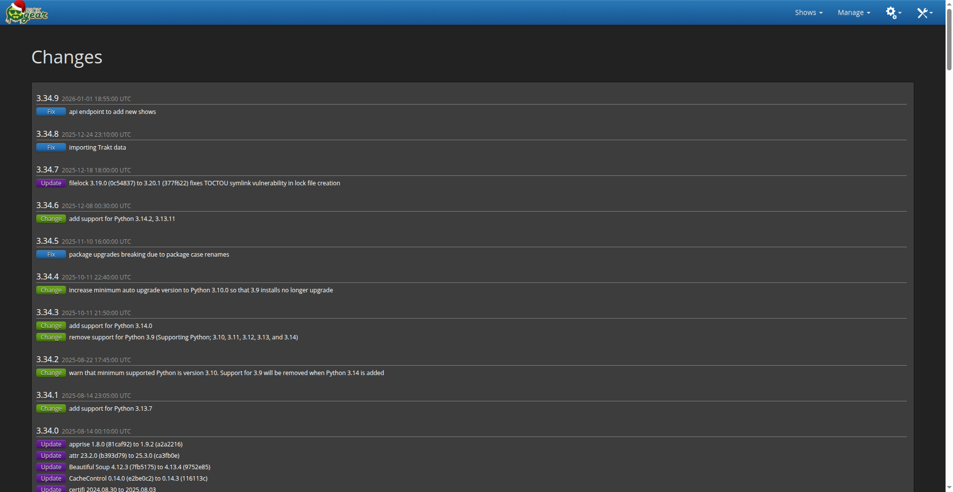 2026-01-01T19:29:57.096862208Z 19:29:57 INFO SHOWMAPSUPDATE :: Checking for release exception updates for TVRage