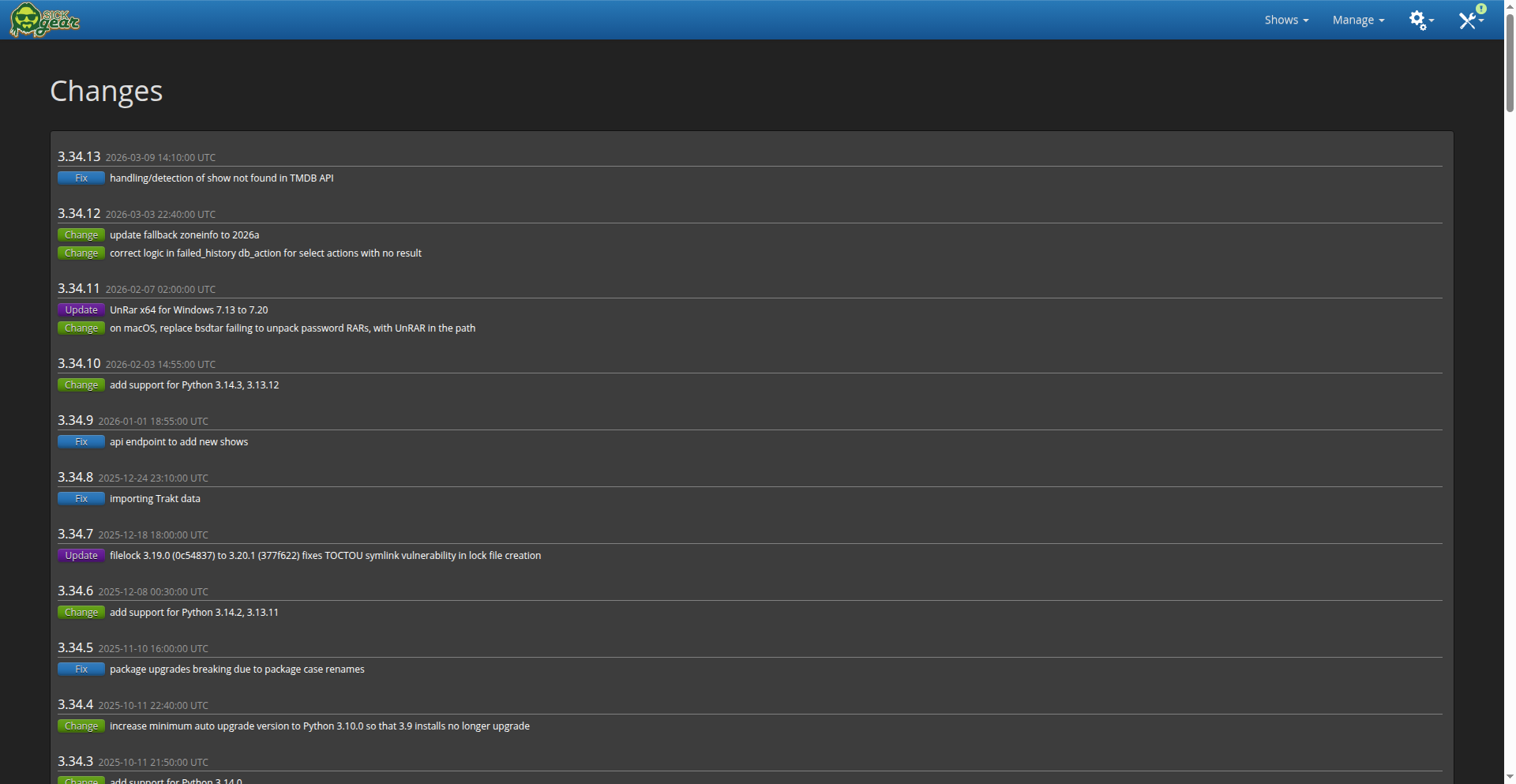 2026-03-20T03:46:12.417060143Z 03:46:12 INFO TORNADO :: Starting SickGear on http://0.0.0.0:8081/