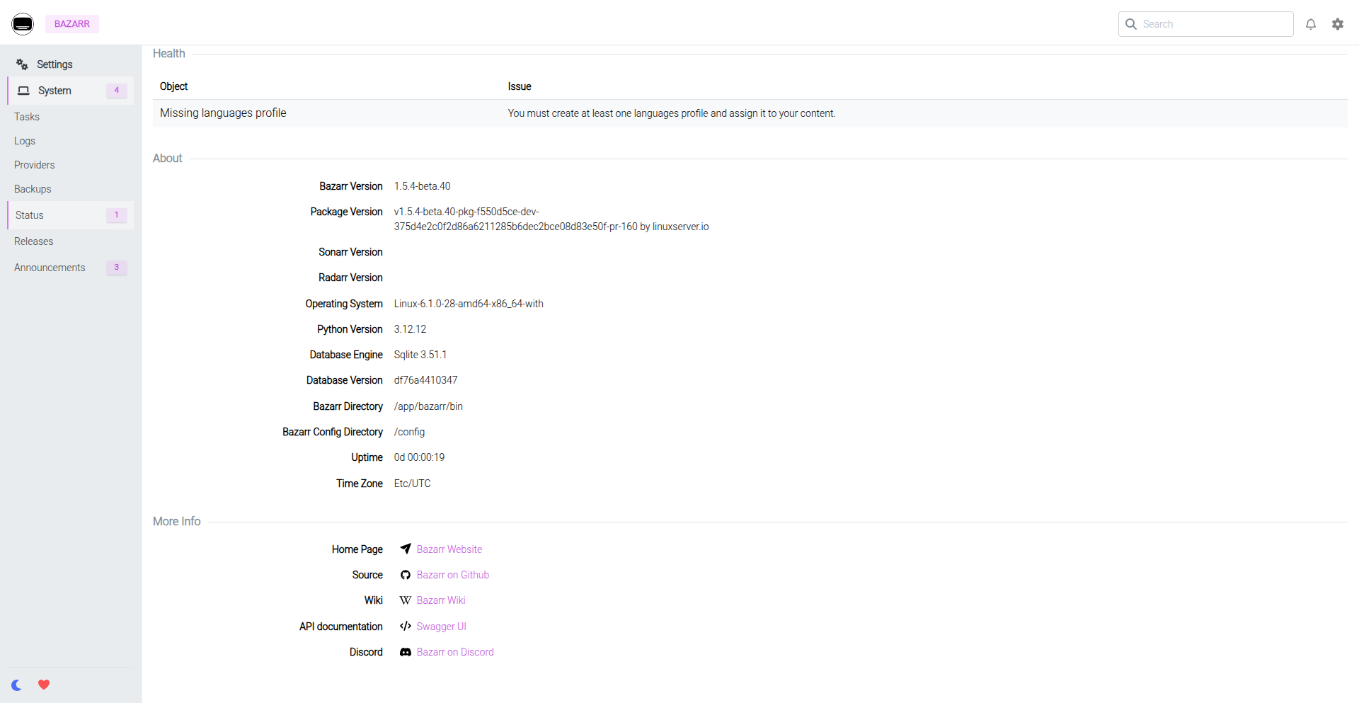 Image: linuxserver/lspipepr-bazarr